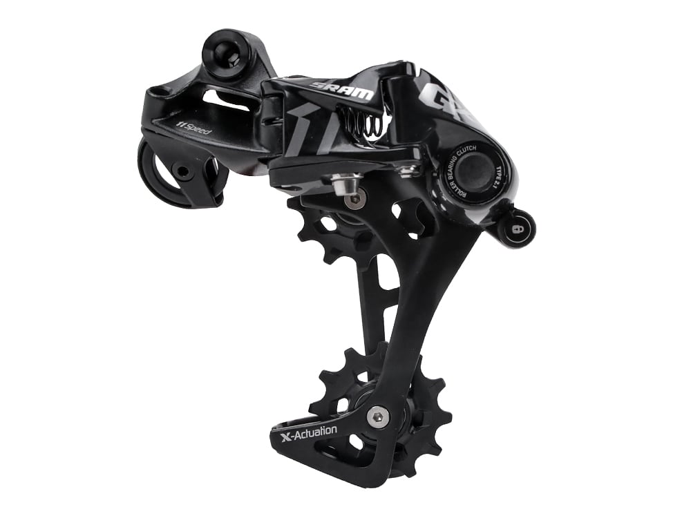 دخول سيرام إلى عالم المجموعات ذات 11 سرعة. يشتمل نظام ناقل السرعات الخلفي GX1 على نفس التقنيات مثل نظام ناقل السرعات العلوي، بما في ذلك نظام ناقل السرعات الخلفي المحسن من النوع 2.1 (قابض المحمل الأسطواني) لتشغيل السلسلة بشكل أكثر سلاسة ونظافة. يتناسب متوازي الأضلاع الخلفي تمامًا مع تدرج الكاسيت 10-42، مما يوفر تغييرات سريعة ودقيقة في التروس عبر النطاق بأكمله. تعمل البكرات الدوارة ذات 12 سنًا مع ملف تعريف الأسنان X-Sync على تحسين توجيه السلسلة. من خلال X-Actuation، تكون عمليات التبديل عبر كامل عرض الكاسيت ثابتة ودقيقة. علاوة على ذلك، فإن ناقل الحركة الخلفي لأبسط استبدال للدافع مزود بنظام Cage-Lock المعروف بالفعل.
