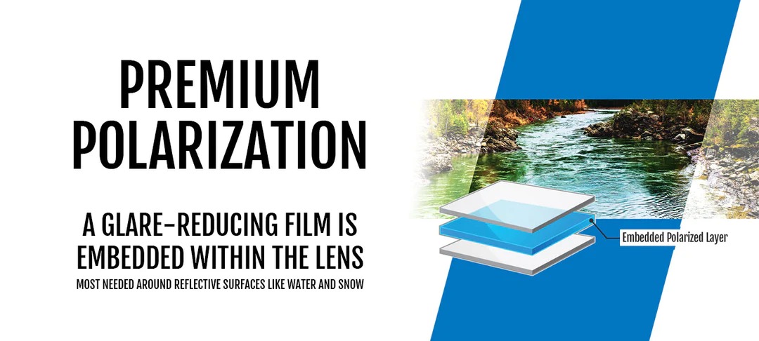 العدسات: دخاني مستقطب – عدسات بولي كربونات مضادة للكسر تقلل الوهج مع حماية 100% من الأشعة فوق البنفسجية فئة A وB من الأشعة فوق البنفسجية